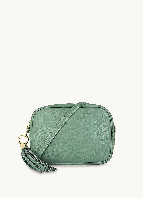 Apatchy London The Tassel Mid Green Leather Crossbody Bag
