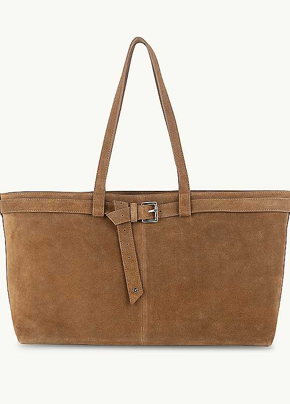 Bold, structured and undeniably chic, the Esme bag is a modern statement in both form and function. Designed in an east-west silhouette, it is available in rich suede and finished with a striking belt buckle fastening. Generously sized and unmistakably stylish, Esme delivers effortless polish from morning meetings to late-night plans. It offers ample space for your daily essentials, plus room for an iPad or a pair of flats, making it as practical as it is stylish. Finished with signature gold-tone hardware, the bag features a fully lined interior with a zipped pocket and an easy-access slip pocket for effortless organisation. Presented in a branded dust bag for added protection.Wipe clean100% Suede