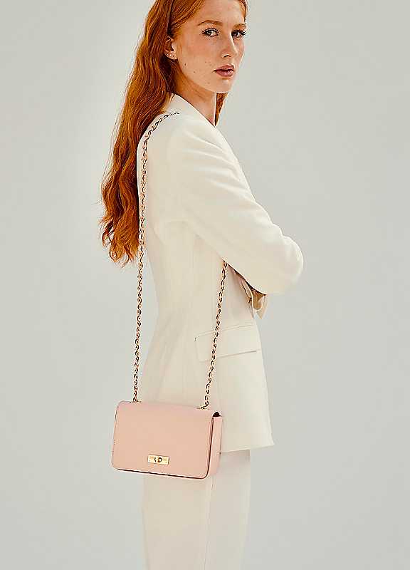 The grace bag exudes timeless elegance with a hint of opulence, seamlessly transitioning from day to night. Crafted from premium box leather, this lightweight, compact accessory offers versatility with both shoulder and crossbody wear. Its refined design is accentuated by a sleek front flap, secured with a striking gold twist-lock clasp, while the leather-plaited chain strap adds a sophisticated touch. Whether dressed up or down, the grace bag elevates any ensemble, making it a must-have addition to your wardrobe. This classic handbag will easily accommodate your essentials such as a purse, keys, mobile phone and cosmetics. Features an internal zipped pocket. The stylish bag is delivered in a branded dust bag.Wipe clean100% Leather