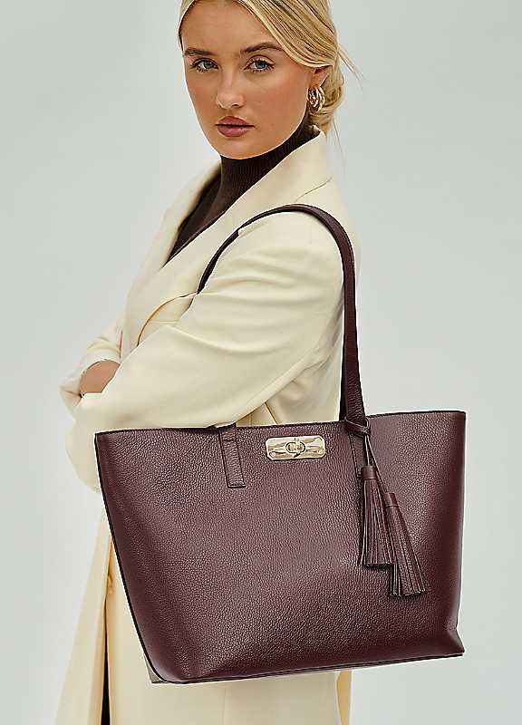 Generously sized for your daily commute or long-haul flights, the Kate tote is crafted from supple pebble-grained leather and designed to sit comfortably over your shoulder. Its spacious interior easily fits your wallet, laptop, water bottle and more, while the gold-tone twist-lock clasp adds a touch of polish and keeps your belongings secure. Both practical and refined, the Kate is your ultimate everyday companion. The interior is thoughtfully lined and includes a secure zipped pocket for added organisation. Delivered in a branded dust bag.Wipe clean100% Leather