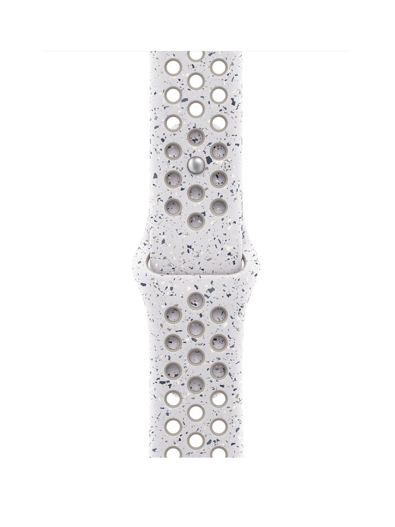 Apple Watch 42mm Veiled Grey Nike Sport Band - S/M Made with compression-molded perforations for breathability, the Nike Sport Band is durable and strong, yet surprisingly soft. It features colorful flakes that create a randomized pattern, making each band unique. The smooth, dense material drapes elegantly across your wrist and feels comfortable next to your skin. An aluminum pin-and-tuck closure - carefully etched with the Run Swoosh logo - gives the pin a fresh matte finish. Compatibility Apple Watch Models 38mm 40mm 41mm 42mm S/M Strap fits 130-180mm wrists Lightweight perforated design for maximum airflow Durable fluoroelastomer ideal for training Pin-and-tuck closure for a secure fit Designed for comfort during intense workouts Designed for all-day comfort and active lifestyles Charger required: N