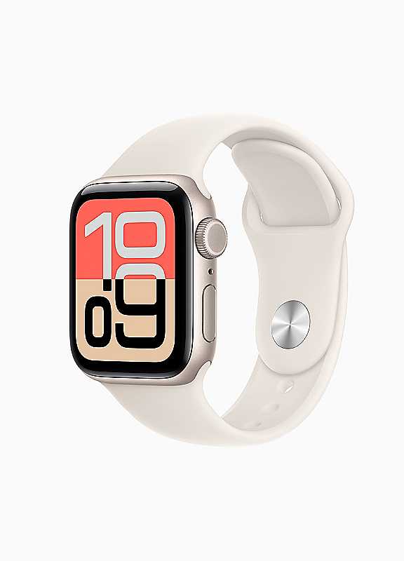 Stay one beat ahead.Get meaningful insights about your health, just by wearing your Apple Watch SE 3. A new wrist temperature sensor enables deeper insights in the Vitals app and retrospective ovulation estimates in the Cycle Tracking app. You'll also receive a daily sleep score and possible sleep apnoea notifications. It's never been easier to live in the know.Make every move count.From running to riding your bike, tennis to tai chi, Apple Watch SE 3 gives you a healthy number of ways to track your workouts. With real time metrics and new personalised fitness encouragement, it will motivate you to hit your goals like never before.The S10 chip - the same epic chip that runs Apple Watch Series 11 and Ultra 3 - comes to SE 3, giving you all new superpowers. Now the Always On display shows the information you want at a glance, without raising your wrist. And intuitive gestures, like double tap and wrist flick, make your watch even easier to control with just one hand when you're holding a coffee or carrying shopping.With Apple Watch SE 3, you can keep in touch with the people and things that matter most. Cellular lets you stay connected even when you don't have your iPhone nearby. And now with 5G capability, you can download apps faster and stream music or podcasts at the speed of go go go.44mm DisplayGPS + Cellular - make calls & send messages with just your Apple watch (a GPS + Cellular model is required to use family setup)Always-on display, more durable Ion-X front glassS10 chip, faster performance over prior model5G connectivity for quicker data on the goUp to 18 hours of battery life on a single charge2x faster USB-C charging vs SE2Health upgrades: sleep apnea detection, temp sensor, sleep scoreGesture control: double-tap & wrist-flick supportPlay music/podcasts directly via built-in speakerLaunched with watchOS26, Liquid Glass UI + Workout Buddy AIStandalone Connectivity: Make & receive calls, send messages, & stream music without needing your iPhone nearbyEmergency Calling: Call emergency services directly from your watch, even without your phoneFamily Setup Support: Set up & manage the watch for family members who don't have an iPhone | smart watch health tracking, rectangular watch, smart watch music player, electronic watch, rechargeable watch, smart watch with heart rate monitor, casual watch, minimalist watch, touch screen smart watch, smart watch for iphone, cellular smartwatch, smartwatch sleep tracking, smart watch fitness tracker, plastic strap watch, digital watch