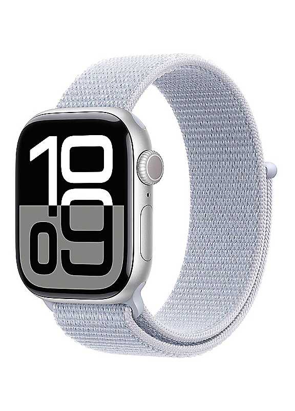 Apple Watch Series 10 GPS + Cellular 46mm Silver Aluminium Case with Blue Cloud Sport Loop - Size 6
