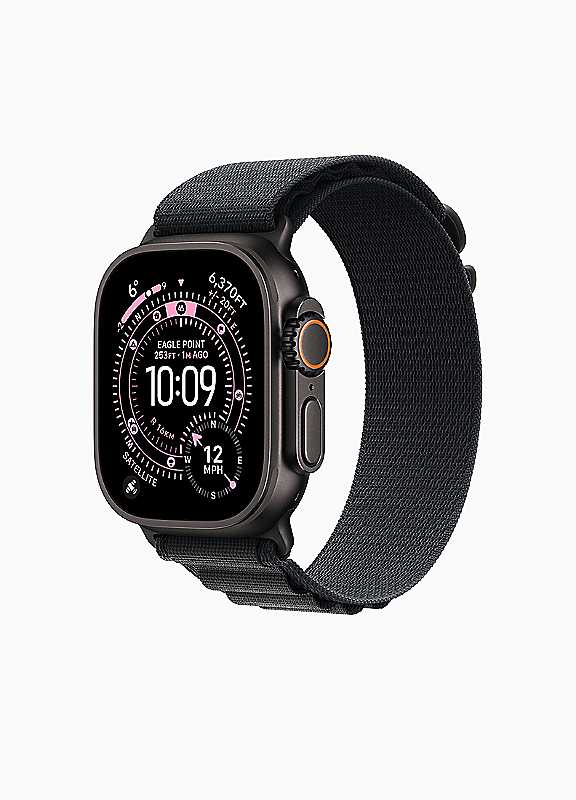 Apple Watch Ultra 3 - Personal beast.Optimise every stride.Calling all runners. Apple Watch Ultra 3 has everything you need to train smarter and reach your personal best. Powerful features like precision dual-frequency GPS, advanced metrics, Custom Workouts and new Workout Buddy help you ace your pace. And now when you're out on a run with just your Ultra 3, you can rely on speedy 5G.A battery built for stamina.Apple Watch Ultra 3 is engineered to give you even longer battery life - so you can go further and wider than ever before. When you do need to power up, you can fast charge in just 15 minutes for up to 12 hours of normal use.Satellite communications. Up and running.Now when you're off the grid without cellular or Wi Fi, Ultra 3 can help you stay connected using built in satellite communications. And if you need critical help, you can contact emergency services via satellite - right from your wrist.All round champion.Apple Watch Ultra 3 ups your game in every sport. When you're cycling, it actively monitors your speed and efficiency so you can see your progress in real time. And in the water, it can track your sets as you swim, automatically detect stroke patterns and calculate your total distance. Time to clock your best.A real lifeline.Packed with innovative safety firsts, Apple Watch Ultra 3 has your back. It's designed to summon help when you need it most - even if you can't reach your iPhone.Know your body by heart.The more insights you have, the more empowered you are to take action. From the ECG app to the Vitals app and more, Apple Watch Ultra 3 provides a bigger picture of your health, so you can stay informed. And now Ultra 3 takes the next big step in heart health with a pioneering feature - hypertension notifications.Stunning in every setting.Apple Watch Ultra 3 is designed to be a master multitasker - transitioning effortlessly from sports watch to smartwatch. Go from boardroom to boxing lesson or scuba diving to dinner without skipping a beat. Take calls, reply to messages, stream music and pay for things on the go. All while tracking your latest health metrics and having helpful safety features on hand, just in case. It's not called Ultra for nothing.49mm titanium case with sleek edge to edge OLED displayLTPO3 OLED display, now bigger (up to 1.98'' from 1.93'') & ultra bright (up to 3,000 nits)Battery life up to 42h under normal use, up to 72h in Low Power ModeFast magnetic USB C charging (Qi compatible) for quick top upsSatellite communication & 5G RedCap, plus off grid SOS textingBlood pressure alerts & advanced health monitoring, including sleep scoreRugged & ready: 100m water resistance, titanium buildwatchOS26 with Liquid Glass design, AI 'Workout Buddy' & gesture control | smart watch with heart rate monitor, smart watch compatible with iphone, black wrist watch, apple watch ultra band, smart watch fitness tracker, digital smart watch, apple watch ultra gps cellular, smartwatch ultra, apple watch fitness tracker, water resistant smart watch, touch screen smart watch, apple watch for health tracking, calorie tracking watch, black titanium watch, smart watch for running, apple watch ultra titanium