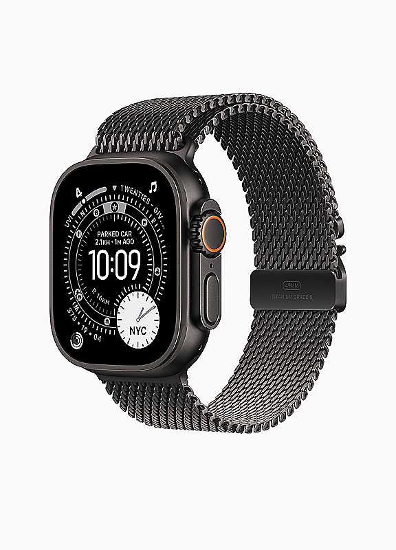 Apple Watch Ultra 3 - Personal beast.Optimise every stride.Calling all runners. Apple Watch Ultra 3 has everything you need to train smarter and reach your personal best. Powerful features like precision dual-frequency GPS, advanced metrics, Custom Workouts and new Workout Buddy help you ace your pace. And now when you're out on a run with just your Ultra 3, you can rely on speedy 5G.A battery built for stamina.Apple Watch Ultra 3 is engineered to give you even longer battery life - so you can go further and wider than ever before. When you do need to power up, you can fast charge in just 15 minutes for up to 12 hours of normal use.Satellite communications. Up and running.Now when you're off the grid without cellular or Wi Fi, Ultra 3 can help you stay connected using built in satellite communications. And if you need critical help, you can contact emergency services via satellite - right from your wrist.All round champion.Apple Watch Ultra 3 ups your game in every sport. When you're cycling, it actively monitors your speed and efficiency so you can see your progress in real time. And in the water, it can track your sets as you swim, automatically detect stroke patterns and calculate your total distance. Time to clock your best.A real lifeline.Packed with innovative safety firsts, Apple Watch Ultra 3 has your back. It's designed to summon help when you need it most - even if you can't reach your iPhone.Know your body by heart.The more insights you have, the more empowered you are to take action. From the ECG app to the Vitals app and more, Apple Watch Ultra 3 provides a bigger picture of your health, so you can stay informed. And now Ultra 3 takes the next big step in heart health with a pioneering feature - hypertension notifications.Stunning in every setting.Apple Watch Ultra 3 is designed to be a master multitasker - transitioning effortlessly from sports watch to smartwatch. Go from boardroom to boxing lesson or scuba diving to dinner without skipping a beat. Take calls, reply to messages, stream music and pay for things on the go. All while tracking your latest health metrics and having helpful safety features on hand, just in case. It's not called Ultra for nothing.49mm titanium case with sleek edge to edge OLED displayLTPO3 OLED display, now bigger (up to 1.98'' from 1.93'') & ultra bright (up to 3,000 nits)Battery life up to 42h under normal use, up to 72h in Low Power ModeFast magnetic USB C charging (Qi compatible) for quick top upsSatellite communication & 5G RedCap, plus off grid SOS textingBlood pressure alerts & advanced health monitoring, including sleep scoreRugged & ready: 100m water resistance, titanium buildwatchOS26 with Liquid Glass design, AI 'Workout Buddy' & gesture control | smart watch with heart rate monitor, apple watch for activity tracking, apple watch ultra cellular, apple watch ultra titanium, milanese watch strap, apple watch ultra gps, smart watch for running, apple watch ultra gps cellular, fitness tracker watch, watch with magnet, smart watch fitness tracker, titanium watch bracelet, water resistant smart watch