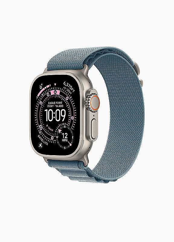 Apple Watch Ultra 3 - Personal beast.Optimise every stride.Calling all runners. Apple Watch Ultra 3 has everything you need to train smarter and reach your personal best. Powerful features like precision dual-frequency GPS, advanced metrics, Custom Workouts and new Workout Buddy help you ace your pace. And now when you're out on a run with just your Ultra 3, you can rely on speedy 5G.A battery built for stamina.Apple Watch Ultra 3 is engineered to give you even longer battery life - so you can go further and wider than ever before. When you do need to power up, you can fast charge in just 15 minutes for up to 12 hours of normal use.Satellite communications. Up and running.Now when you're off the grid without cellular or Wi Fi, Ultra 3 can help you stay connected using built in satellite communications. And if you need critical help, you can contact emergency services via satellite - right from your wrist.All round champion.Apple Watch Ultra 3 ups your game in every sport. When you're cycling, it actively monitors your speed and efficiency so you can see your progress in real time. And in the water, it can track your sets as you swim, automatically detect stroke patterns and calculate your total distance. Time to clock your best.A real lifeline.Packed with innovative safety firsts, Apple Watch Ultra 3 has your back. It's designed to summon help when you need it most - even if you can't reach your iPhone.Know your body by heart.The more insights you have, the more empowered you are to take action. From the ECG app to the Vitals app and more, Apple Watch Ultra 3 provides a bigger picture of your health, so you can stay informed. And now Ultra 3 takes the next big step in heart health with a pioneering feature - hypertension notifications.Stunning in every setting.Apple Watch Ultra 3 is designed to be a master multitasker - transitioning effortlessly from sports watch to smartwatch. Go from boardroom to boxing lesson or scuba diving to dinner without skipping a beat. Take calls, reply to messages, stream music and pay for things on the go. All while tracking your latest health metrics and having helpful safety features on hand, just in case. It's not called Ultra for nothing.49mm titanium case with sleek edge to edge OLED displayLTPO3 OLED display, now bigger (up to 1.98'' from 1.93'') & ultra bright (up to 3,000 nits)Battery life up to 42h under normal use, up to 72h in Low Power ModeFast magnetic USB C charging (Qi compatible) for quick top upsSatellite communication & 5G RedCap, plus off grid SOS textingBlood pressure alerts & advanced health monitoring, including sleep scoreRugged & ready: 100m water resistance, titanium buildwatchOS26 with Liquid Glass design, AI 'Workout Buddy' & gesture control | touch screen smart watch, digital smart watch, bluetooth smart watch, fabric watch bands, calorie tracking watch, water resistant smart watch, blue wrist watch, titanium watch straps, fitness tracker watch, smart watch for running, smart watch fitness tracker, oversized wrist watch, fitness and sleep tracker watch, rectangle dial watches, smart watch with music player, smart watch with gps, smart watch with heart rate monitor