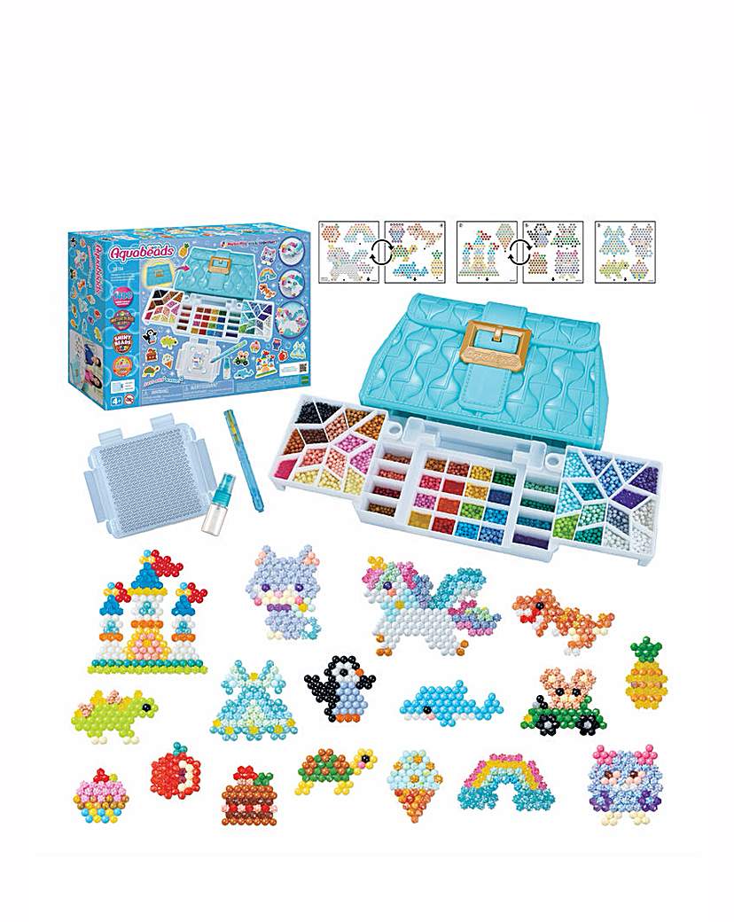Aquabeads is the Original Water-Activated Bead Craft Kit! Since 2004, children throughout the world have created millions of Aquabeads designs. The Designer's Carry Case includes 1400 beads, Carry case with Bead Palette, Pop-Up Tray, Double-sided Aquabeads pen, sprayer, template sheet, and instructions. Following the template sheet, place the beads onto the tray to create unicorn, monster, cat, and lots more. Using the sprayer, spray water onto the beads to make them magically stick together! Includes 1400 classic, jewel, polygon, star beads in 48 colors including the new Watercolour Beads, carry case with bead palette, Small Bead Palette, Pop-Up tray, Double-sided Aquabeads Pen, Sprayer, template sheet, and instructions. For children ages 4 and up. Aquabeads was created by Epoch Co., Ltd. in 2004 as the original stick with water bead toy. Not suitable for children under age 3 due to small parts.