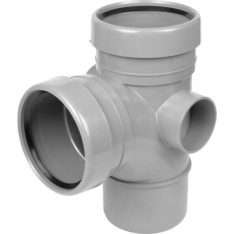 To connect various horizontal pipes to a central soil pipe, opt for Aquaflow's branch 110 mm 92.5deg fitting. In a complex plumbing system where you have a range of connected fixtures such as sinks and baths or washing machines and sinks, this model is perfect for routing them all to one soil pipe that will allow all the waste to be redirected at the same place. This fixture's sturdy plastic material is waterproof and durable. There's easy installation with no extra tools required - simply slot the pipes together. Plus, it conforms to BS EN 12056-2:2000 and the manufacture requirements of EN 1329-1 Building Regulations to ensure it is up to quality standards and is safe to use. | Aquaflow Branch 110mm 92.5deg Double in Grey | Plastic