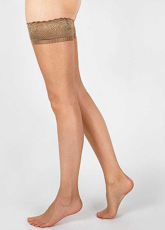 The 10 Denier Hold Ups have a delicate deep lace top for added comfort. With innovative silicone bands that ensure the hold ups remain in place. The high quality yarns are beautifully finished with a soft handle.10 denier sheer legShine finishDeep lace topDiscreet silicone bands ensuring a secure and non-slip fit that stays in placeFlat seamsLightly reinforced toeHand washDo not tumble dryDo not ironDo not dry clean87% Polyamide, 13% Elastane