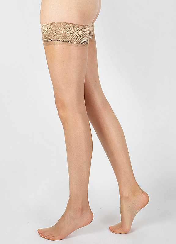 The 10 Denier Hold Ups have a delicate deep lace top for added comfort. With innovative silicone bands that ensure the hold ups remain in place. The high quality yarns are beautifully finished with a soft handle.10 denier sheer legShine finishDeep lace topDiscreet silicone bands ensuring a secure and non-slip fit that stays in placeFlat seamsLightly reinforced toeHand washDo not tumble dryDo not ironDo not dry clean87% Polyamide, 13% Elastane