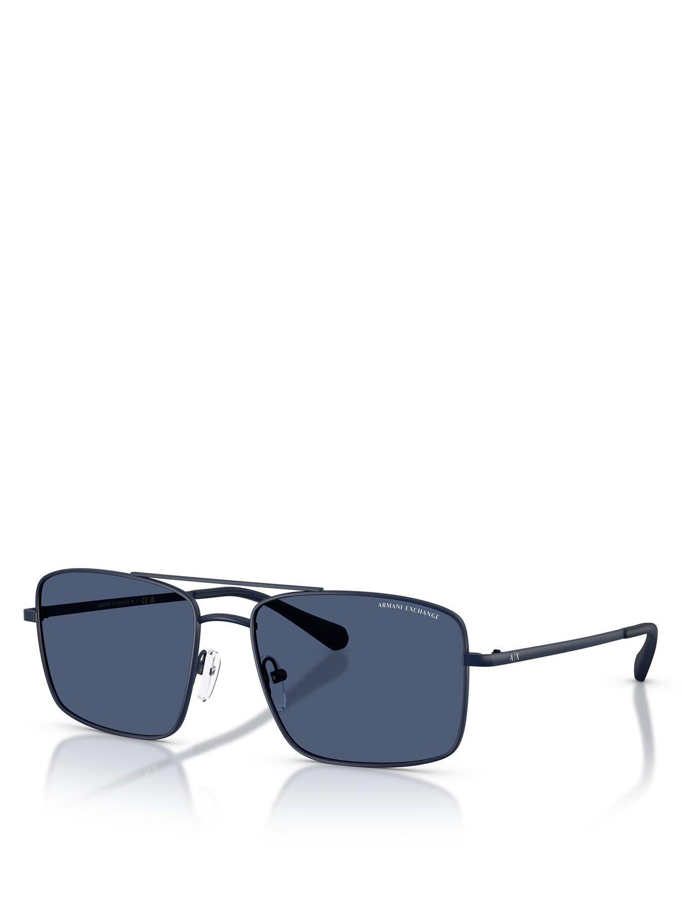 Armani Exchange 0Ax2054S Navigator Sunglasses Size & Fit One Size Details 0Ax2054S Navigator Sunglasses By Armani Exchange Blue Coloured Lens Branded Arm Detail Double Bridge With Moulded Nose Pads Material & Care Material Content: Metal Washing Instructions: Wipe Clean