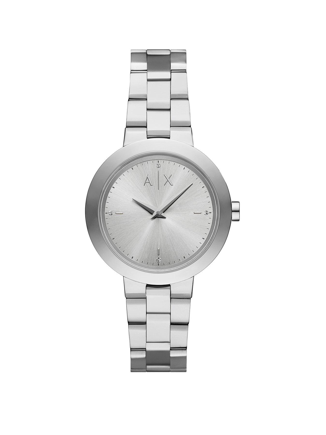 Armani Exchange Women'S 2-Hand Stainless Steel Watch Ax5170 Size & Fit 3.6Cm Watch Face Details Women'S Two-Hand, Stainless Steel Watch, Ax5170 By Armani Exchange Silver Armani Exchange'S 36Mm Watch Features A Silver Sunray Dial, 2-Hand Movement And Stainless Steel Bracelet Height: 7 Mm Width: 36 Mm Case Diameter (In Cm): 3.6 Case Height (In Cm): .7 Case Shape: Round Case Width (In Cm): 3.6 Glass: Mineral Movement: Japanese Quartz (Battery) Strap Material: Stainless Steel Water Resistant: Y Round Stainless Steel Case, With A Silver Dial. Silver, Stainless Steel Bracelet. Water Resistant Up To 50M: Wearable While Swimming In Shallow Water.