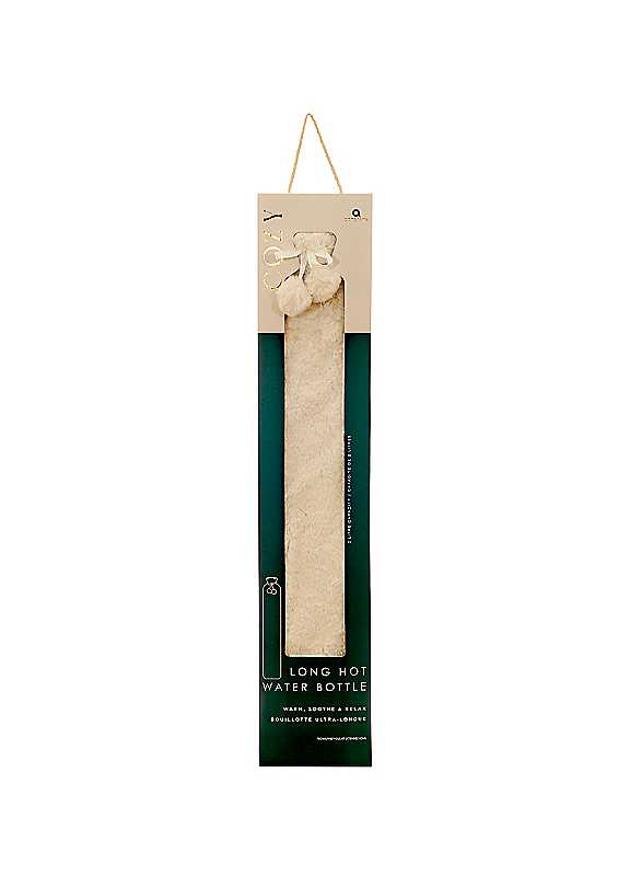Get cosy with our Cream Faux Fur Long Hot Water Bottle. The extra long length has been designed to wrap around your shoulders, tummy or along the length of your body for more coverage than a standard hot water to provide additional warmth and comfort. Heat therapy is a great natural way to soothe aches and pains, ease menstrual cramps or soothe and relax the mind & body in preparation for a restful nights sleep. Follow all instructions and warnings supplied with the hot water bottle and check the stopper and bottle for damage prior to each use.Cover: 100% PolyesterHot Water Bottle: 100% Rubber