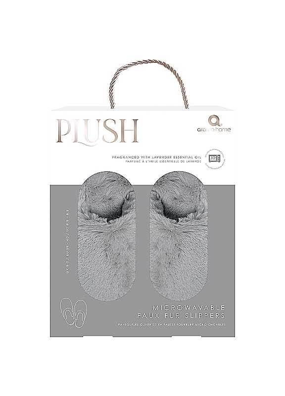 Get cosy with these luxurious open back mule slippers from Aroma Home; made from sumptuously soft faux fur, the slippers contain a microwavable insert which, when heated, provides warming relief for tired feet.The inserts are fragranced with lavender essential oil for an enhanced ambience of rest and relaxation, giving you the perfect excuse to put your feet up. UK Ladies Size 5-7. Cover: 100% Polyester Microwavable Insert Cover: 100% Cotton Microwavable Filling: 99% Tourmaline Beads, 1% Lavender Essential Oil
