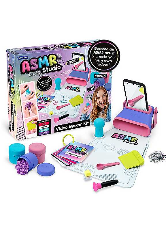 Create the ultimate ASMR experience with the ASMR Studio! Includes a phone holder (fits all popular models) to record and amplify the sound you create. With mix and match compounds, sensory components, tools and a playmat - everything you need to make unique, satisfying ASMR videos (phone not included)!Includes phone holder, mix & match compounds, sensory components, tools, textured matAge Suitability: 8+ YearsNot suitable for children under 36 months. Choking hazard - contains small parts.