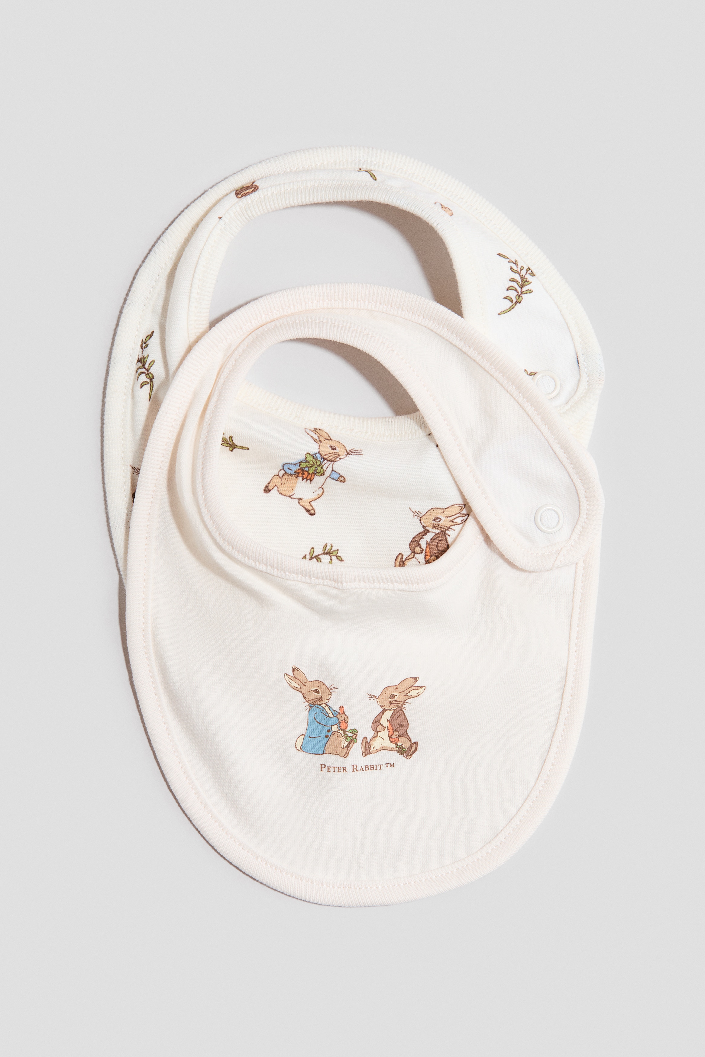 Baby - Cream/Peter Rabbit 2-pack printed cotton jersey bibs - Size: 19x17 - H&M