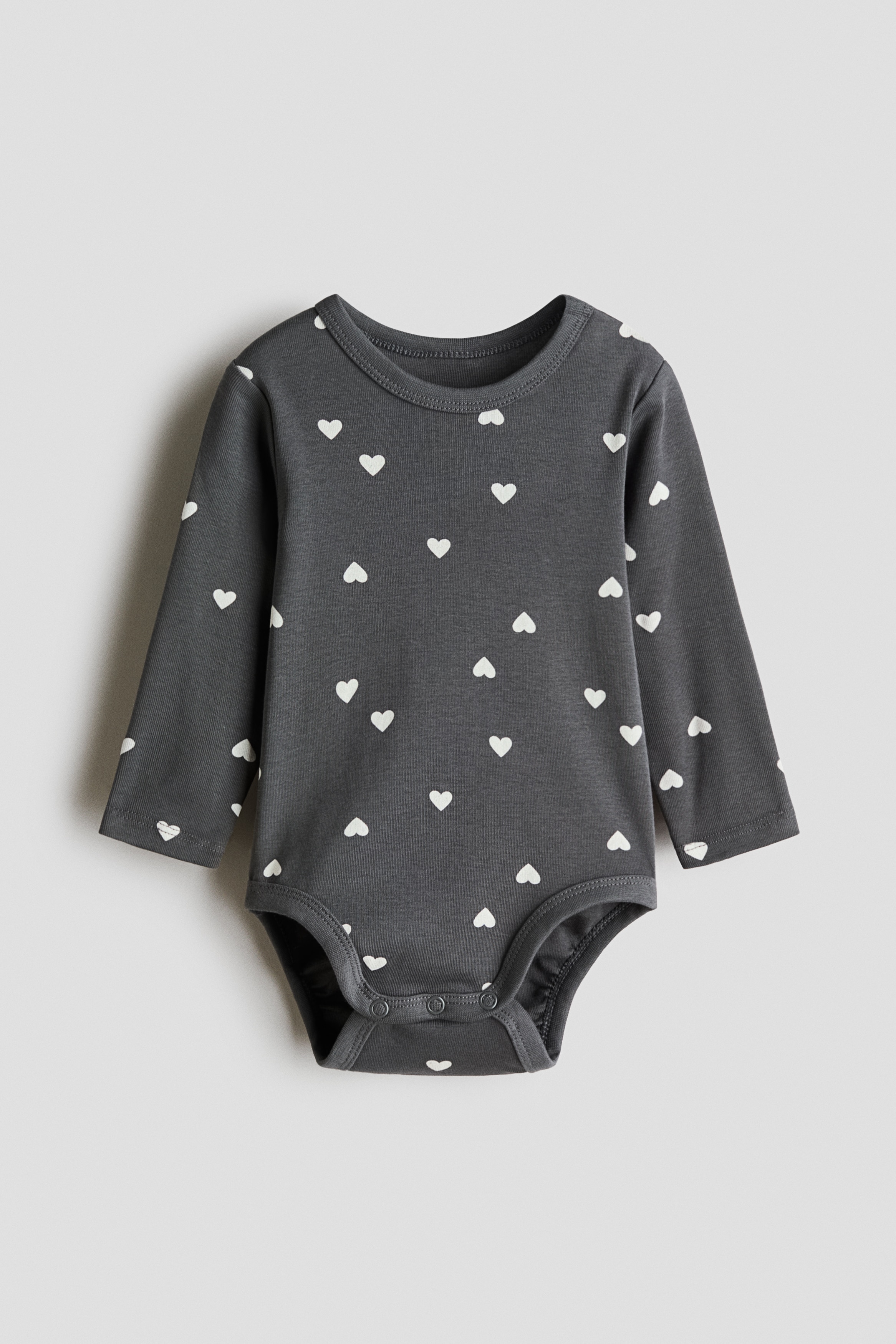 Baby - Dark grey/Hearts Printed cotton bodysuit - Size: 1-2M - H&M