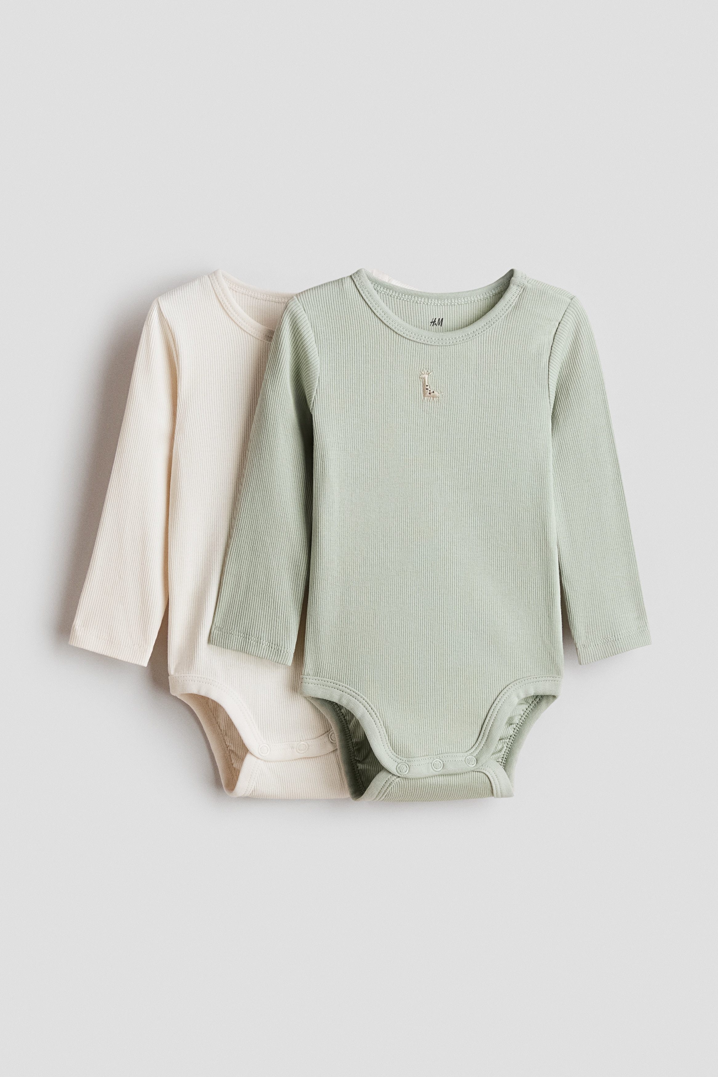 Baby - Dusty green/Giraffe 2-pack cotton bodysuits - Size: 2-3Y - H&M