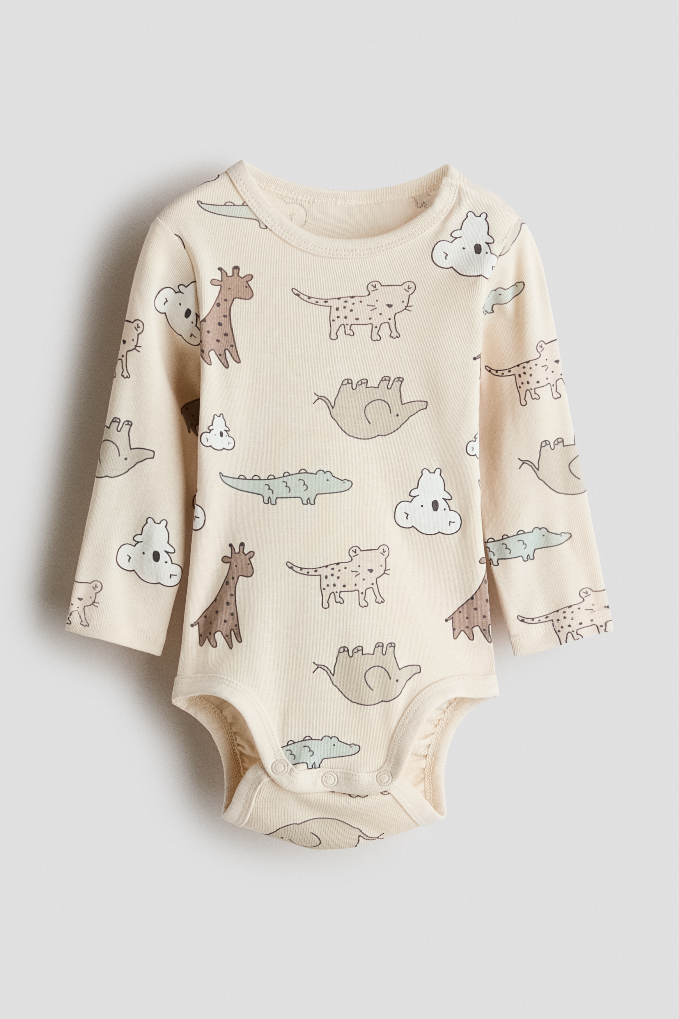 Baby - Light beige/Animals Printed cotton bodysuit - Size: 1-2M - H&M