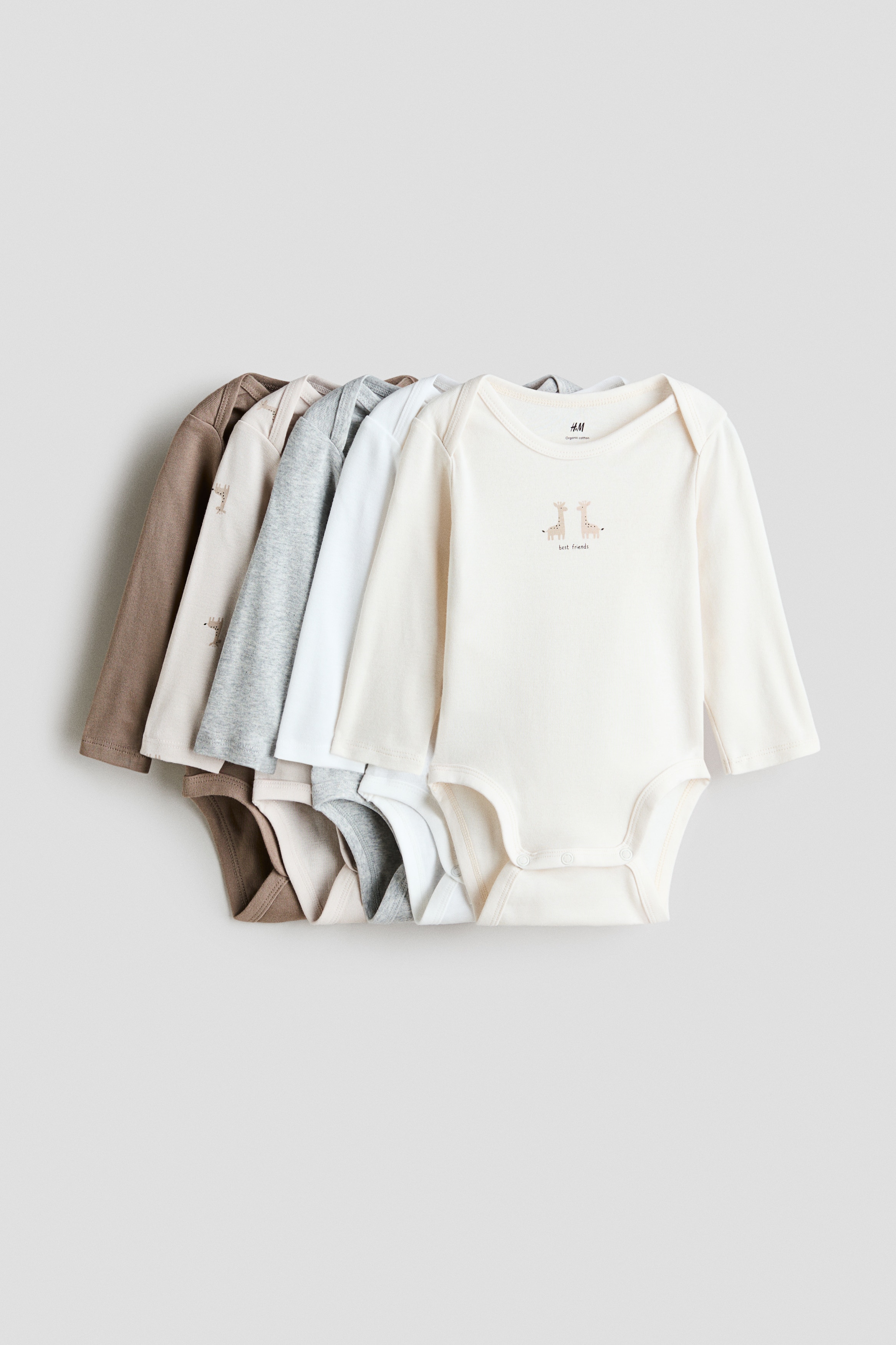Baby - Light beige/Giraffes 5-pack long-sleeved bodysuits - Size: 2-4M - H&M