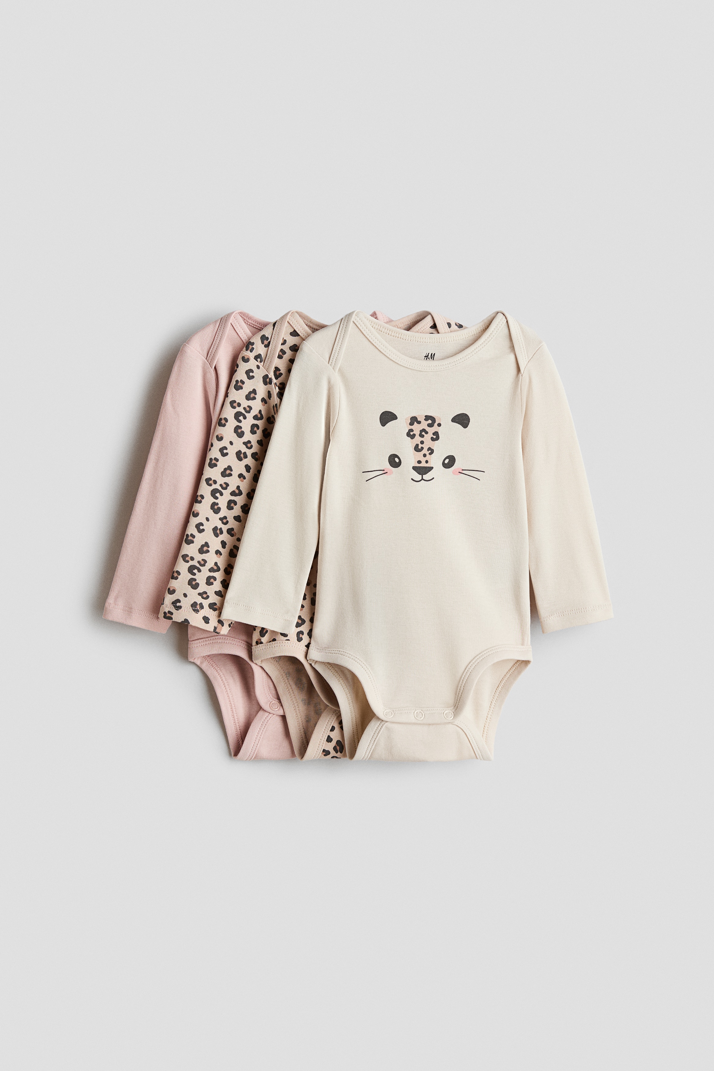 Baby - Light beige/Leopard 3-pack printed jersey bodysuits - Size: 6-9M - H&M