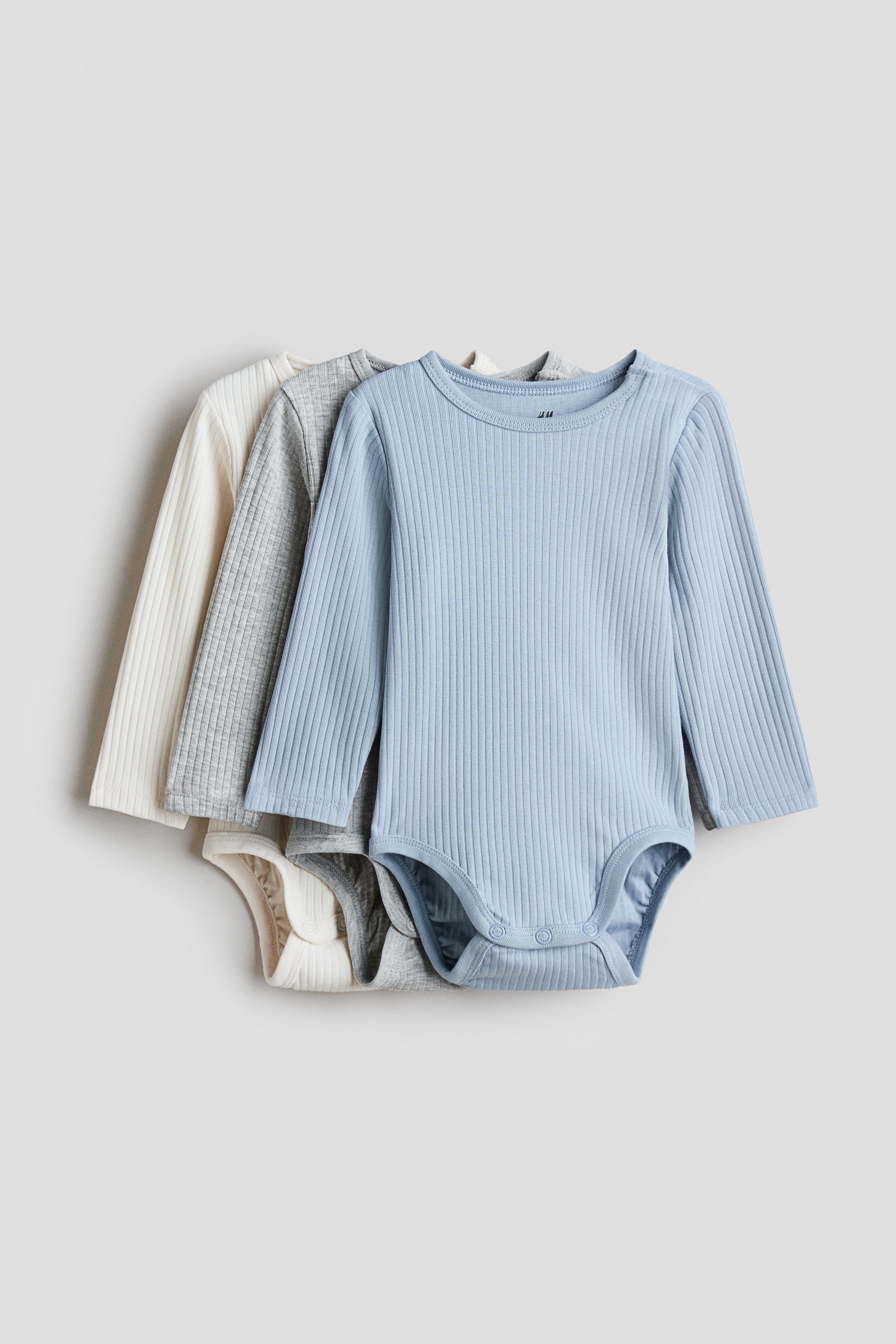 Baby - Light blue/Light grey 3-pack ribbed bodysuits - Size: 4-6M - H&M