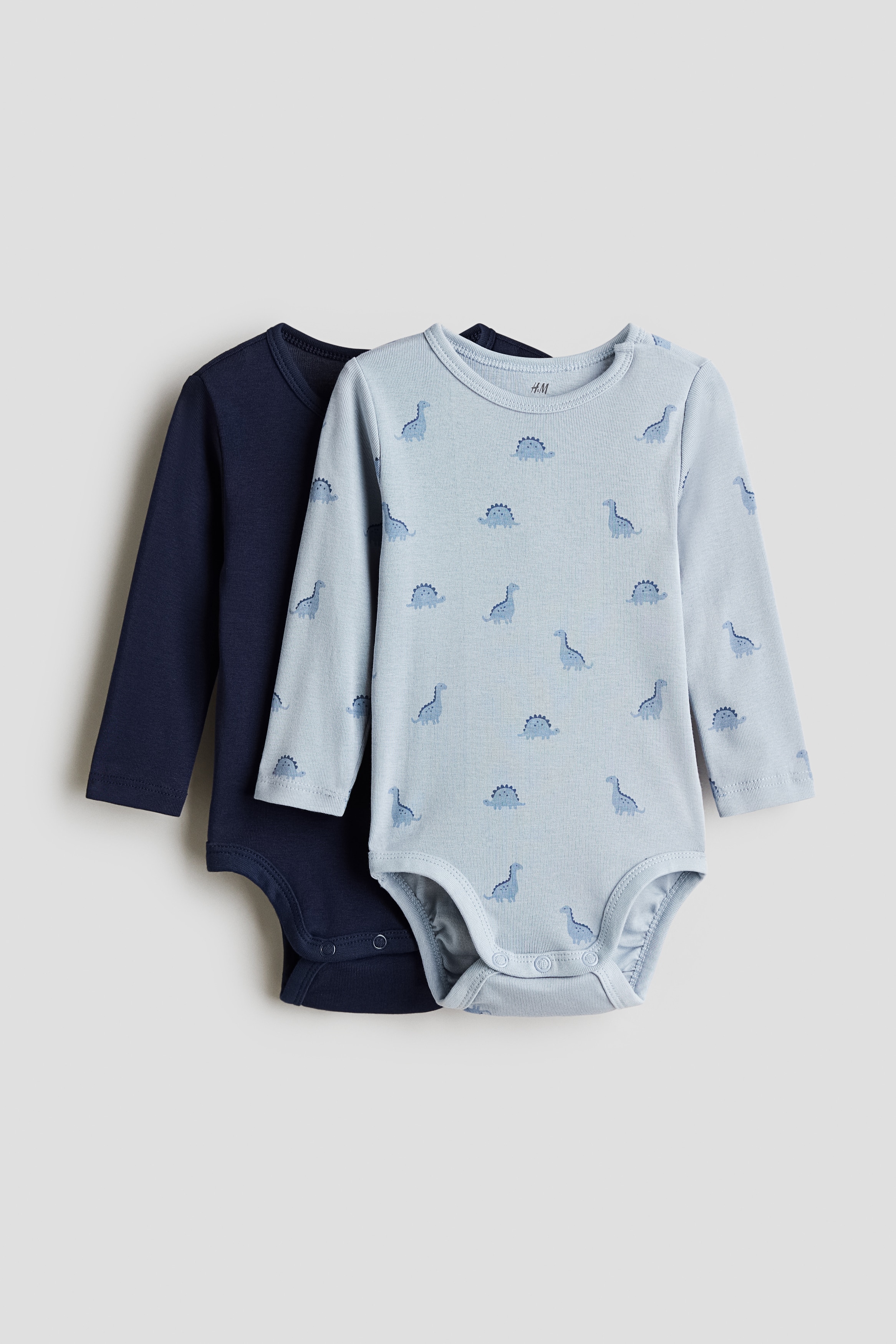 Baby - Navy blue/Dinosaurs 2-pack long-sleeved bodysuits - Size: 1-2M - H&M