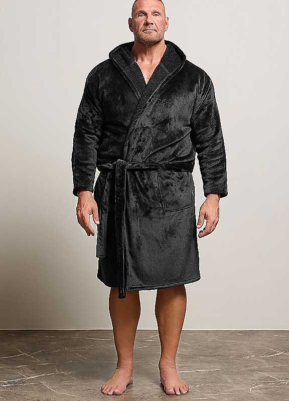 BadRhino Soft Fleece Dressing Gown - Black - Size 4XL