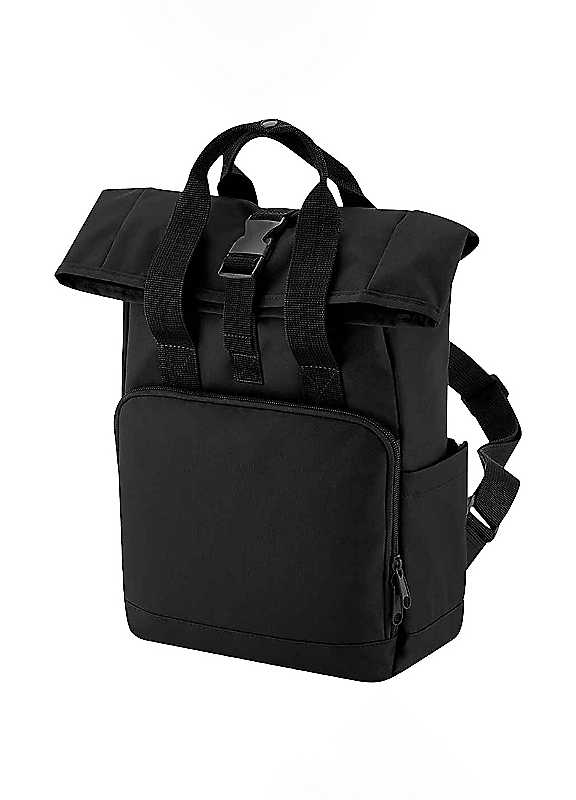 Bagbase Black Unisex Adult Mini Recycled Twin Handle Backpack