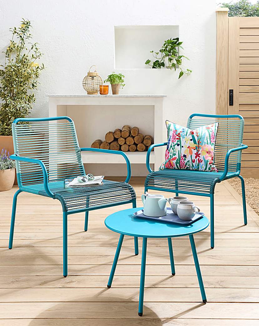 Bali Bistro Set features: Rope wicker weaving on the chair. Chairs can be stacking when not use. Approx 10 minutes assembly time. 12 Month manufacturers warranty.
