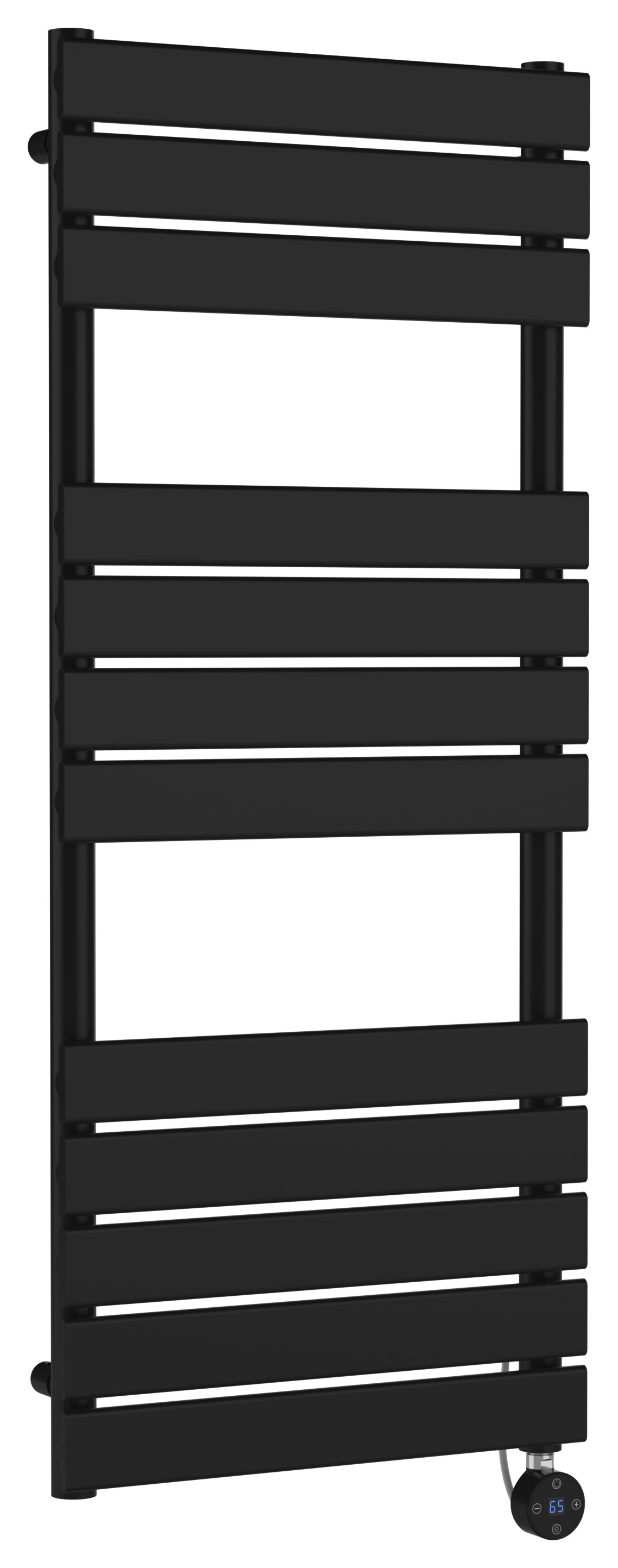 Balterley Matt Black Electric Square Single Panel Vertical Flat Towel Radiator 600W - 1213 x 500mm