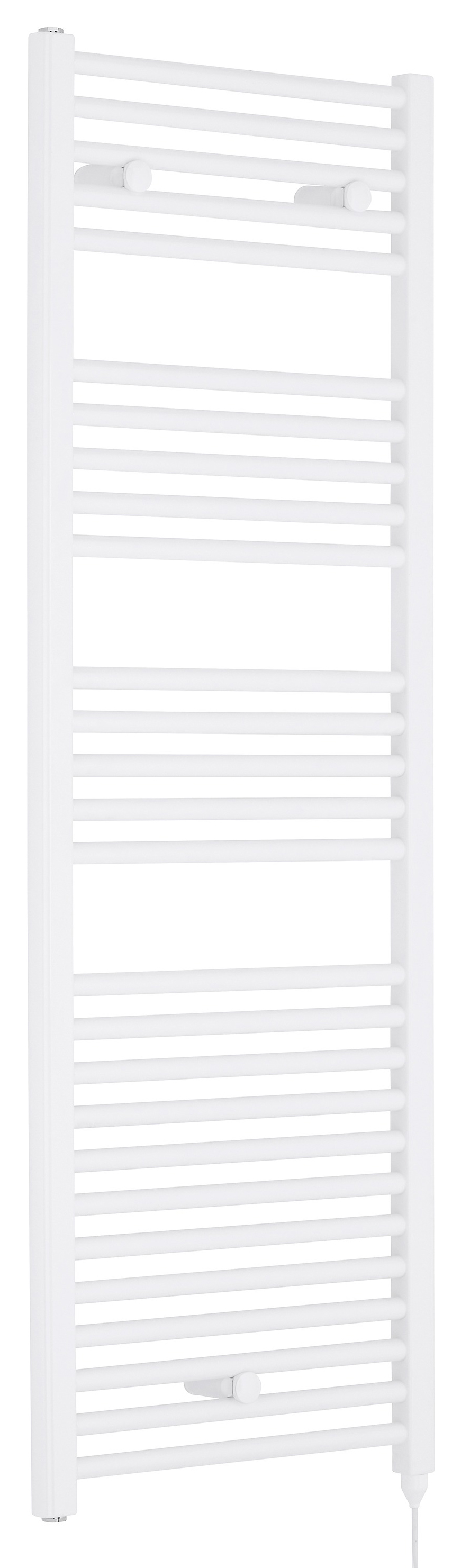Balterley White Electric Single Panel Vertical Towel Radiator 750W - 1375 x 480mm - Balterley White Electric Single Panel Vertical Towel Radiator is a stylish addition to your bathroom. Its distinctive classic ladder design and elegant white finish make it a prominent feature in any modern interior. This vertical radiator is constructed from durable steel, is pre-filled with electrical inhibitor solution, and is suitable for electric heating systems.