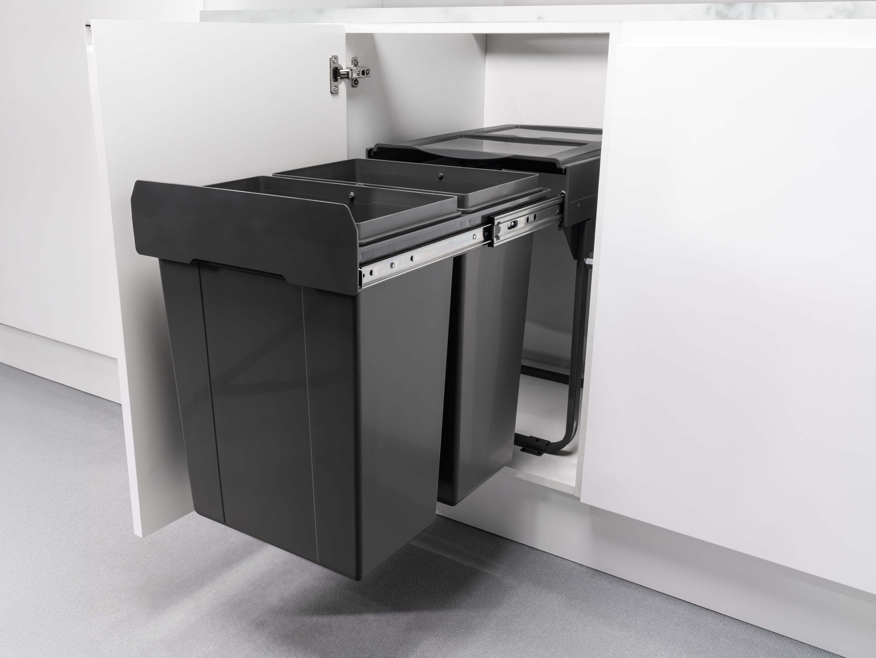 Base Mounted Bin 2 x 30L - Pull out waste bin that incorporates its own runners and is secured to the cabinet floor