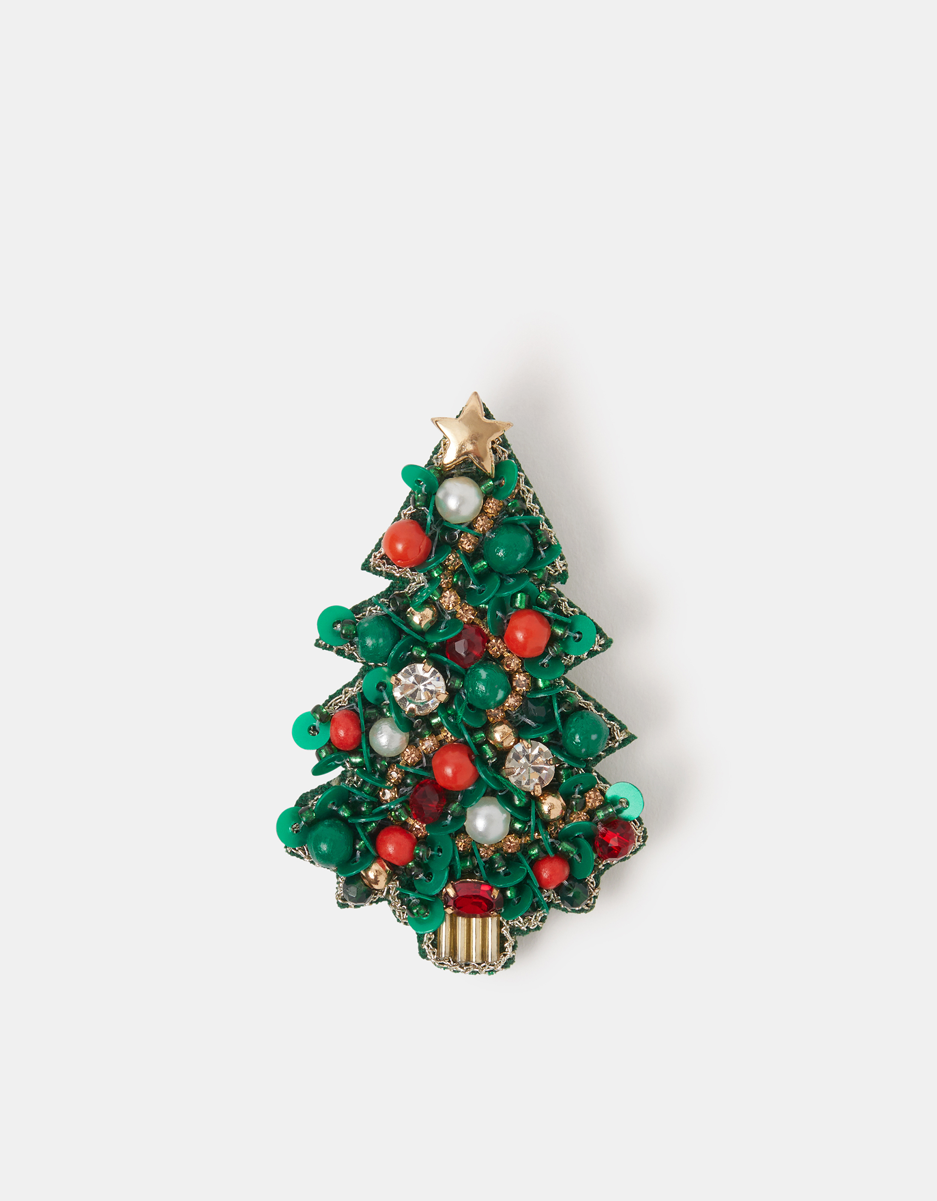 O Christmas Tree, O Christmas Tree! Crafted with sequins, beads and diamantés, this brooch brings festive cheer to your winter knits. Finished with a star and sparkly tinsel, it's almost as decorated as yours...