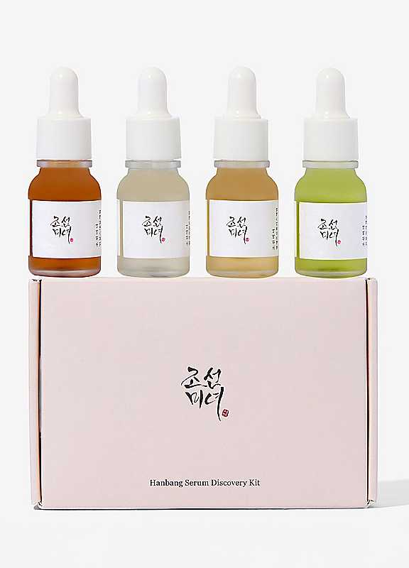 A mini serum set, perfect for discovering Beauty of Joseon. Try out Beauty of Joseon's iconic serums, all created using 'hanbang' ingredients (traditional Korean medicine and herbs). Featuring a Glow Serum, Glow Deep Serum, Revive Serum, and Calming Serum, this set contains everything you need to tackle a number of skin concerns and conditions.