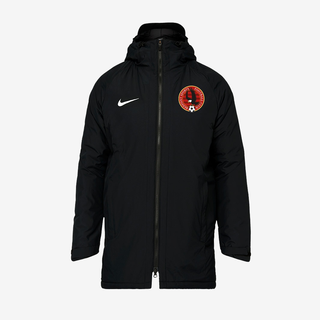 The Bedfont Sports Academy Sideline Fill Jacket is built for the elements. It features a structured, brimmed hood to keep you covered from the rain and drawcords at the hood to create a snug fit thats perfect for the pitch. The Bedfont Sports Academy Sideline Fill Jacket has sweatwicking fabric to keep you dry and comfortable while you hone your skills. Nike Dry fabric wicks sweat for dry comfort.Zippered hand pockets provide secure storage.Dropped back hem with adjustable drawcords provides extended coverage.Structured hood with brim provides coverage.Hookandloop closures on the sleeves can be used to adjust cuff size.Fullfront zipper for easy on and off.100 polyester.