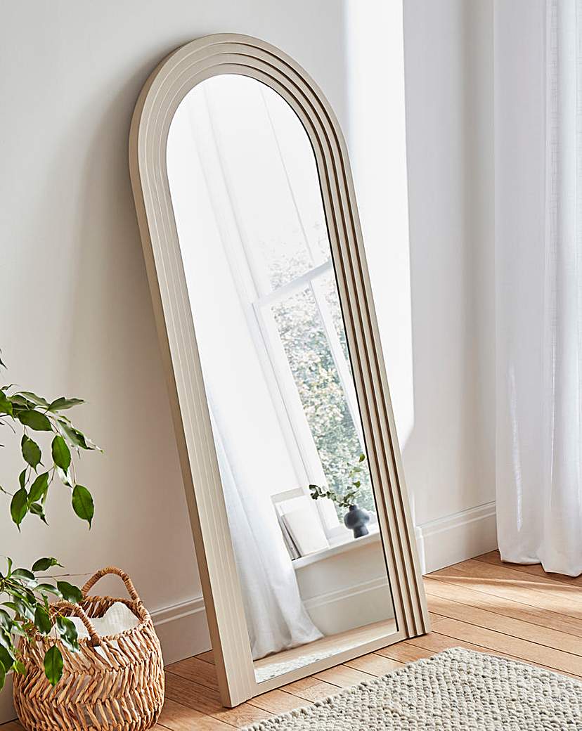 This feather gray full-length mirror features a sleek arched silhouette paired with a distinctive ribbed frame design, adding depth and texture to its minimalist form. Ideal for bedrooms, dressing rooms, or hallways, this mirror brings a sense of height and openness to your space.