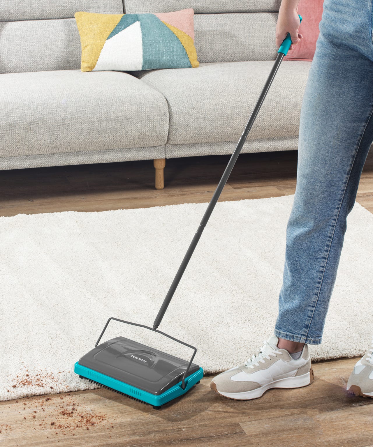 Pick up everyday dust and messes with the easy to use carpet sweeper from Beldray. With a long handle so it's kinder on your back, use it on hard floors, rugs or carpets. Manual so no cable to trip over and can be used in a caravan where there's no power. Handle length: 110cm approx