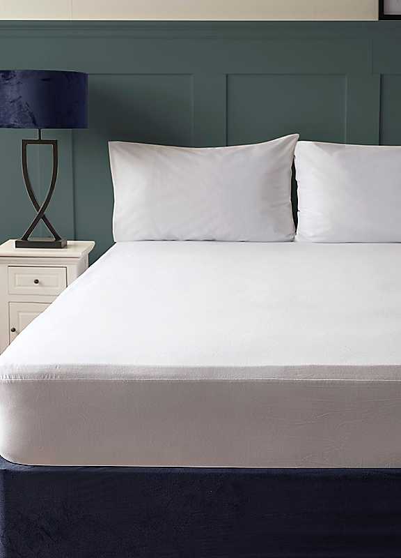 Our 100% cotton jersey mattress protector offers superior comfort with its soft, breathable fabric. The waterproof layer protects against spills and stains, and the anti-bacterial finish ensures a clean, hygienic sleeping environment. The elasticated edges ensure a snug fit that feels like a fitted sheet, providing unnoticeable comfort without compromising the feel of your mattress.The mattress protector is machine washable making it easy care. Enhance sleep hygiene, extend the life of your mattress, and provide peace of mind.OEKO-TEX® certifiedMachine washable at 40°CLow tumble dryDo not iron100% Jersey Cotton, TPU Lamination