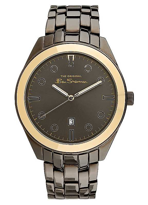 This Ben Sherman model has a Round Gun Polished case, a Gun Sunray Dial and is fitted with a Gun Bracelet. It comes with a watch box and 2 year warranty.MultifunctionVD75 MovementAlloy IP Gun (IP Gold Bezel)Polished 44x49 mm CaseMineral GlassGun Sunray DialGun Stainless Steel Bracelet | metal watch bracelet, round watches for men, gun metal watch, quartz watch men, gold plated watch, men's analog watch
