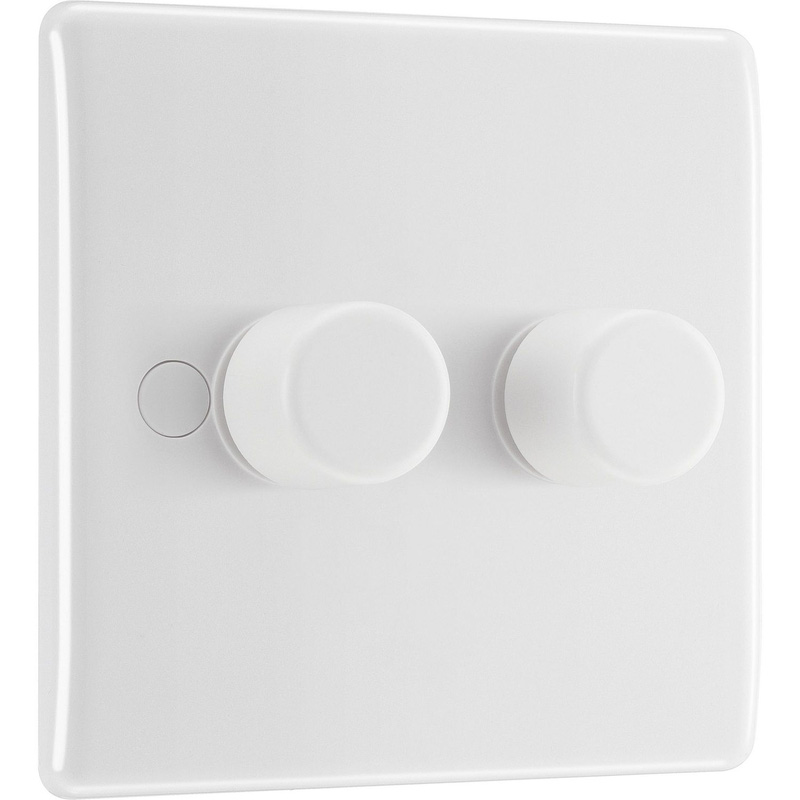 BG 800 Series Moulded Round Edge Dimmer Switch 2 Gang in White