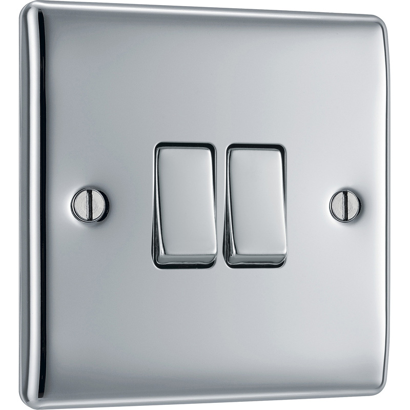 BG Nexus Metal Polished Switch 20A 16AX 2 Gang 2 Way in Chrome | Plastic