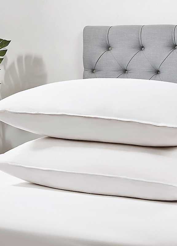 BHS Home all natural duck feather and down pair of pillows, with 90% Class 1 Duck Feather and 10% Class 1 Duck Down filling and a 100% Cotton percale 233 thread count covering. These pillows are sumptuously soft and have 1000 gm filling to offer soft to medium support. 233 thread count Machine washable, Medium support, Tumble dry low heat 100% Cotton Percale Cover, Filling: 70% Feather, 30% Soft microfibre, Natural Materials Duck Feather & Down Pillow Information