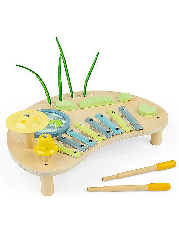 Swing to the beat and tune into nature with our all-in-one Jungle Music Bench! Bursting with charm, this marvellous music toy comes packed with built-in instruments: a musical wooden alligator, two reed drumsticks, a lily pad lake drum, a colourful xylophone, and two cheerful toadstool bells. Perfect for little musicians, it encourages creativity, rhythm, and imaginative play - all while bringing the sounds of the jungle to life!Age Suitability: 18 Months