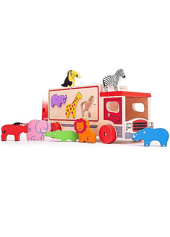 Who's ready for a safari? Hop aboard this Safari Sorting Toy Lorry and load the colourful wooden animals via the special slots on the roof and side panels of the vehicle.Age Suitability: 18 Months