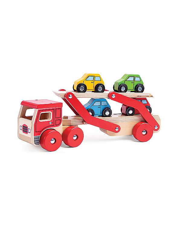 This Wooden Transporter Lorry Toy helps develop kids' dexterity and coordination as they play. It carries a load of four colourful wooden cars, which slot neatly onto the trailer, and is perfectly safe for little hands to enjoy.Age Suitability: 12 Months
