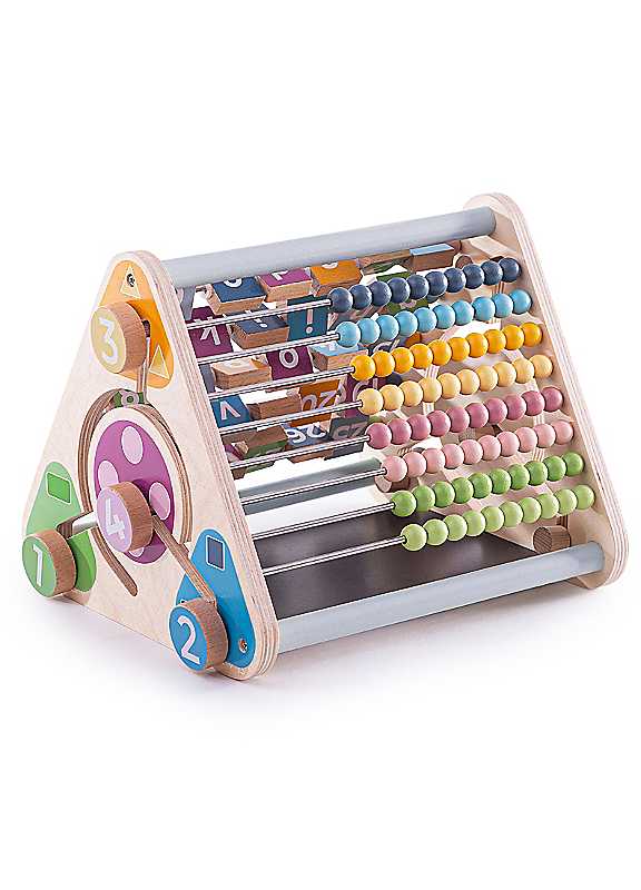 Explore the animal blocks, spin the alphabet squares, and sort the animal faces with our FSCĀ® Certified Wooden Activity Centre. With five sides packed full of fun, tots can learn to count with the abacus beads, match the different animals, and so much more!Age Suitability: 12 Months