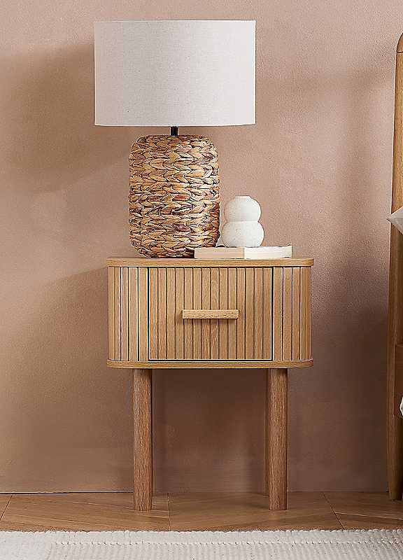 Elevate your bedroom decor with this exquisite 1 Drawer Fluted Bedside, a perfect blend of modern sophistication and timeless elegance. Crafted exclusively from high-quality MDF in a luxurious oak finish, this to bring warmth and style to any bedroom setting. Featuring exquisite, fluted detailing that adds a touch of sophistication and modern charm to your bedroom space. Designed with both aesthetics and functionality in mind and offers an ample storage solution and sturdy construction to ensure durability and longevity. The oak finish enhances the natural beauty of the wood grain, creating a cosy and inviting atmosphere. Whether you're updating your current bedroom decor or furnishing a new space, the Fluted design provides the perfect combination of style and practicality. Transform your bedroom into a serene retreat with a timeless beauty and modern elegance.Weight of Product: 9kgSuggested Number of People for Assembly: 1/2Tool Kit Included: YesSelf-AssemblyManufacturer's 1 year guaranteeWipe clean only, avoid household cleaners/abrasivesMDFOverall assembled dimensions approx. 54H x 45W x 40D cmPlease remember to measure your available space before ordering. If using on an un-carpeted floor we recommend rubber or felt protection pads be used under the legs to avoid damage to your floors.