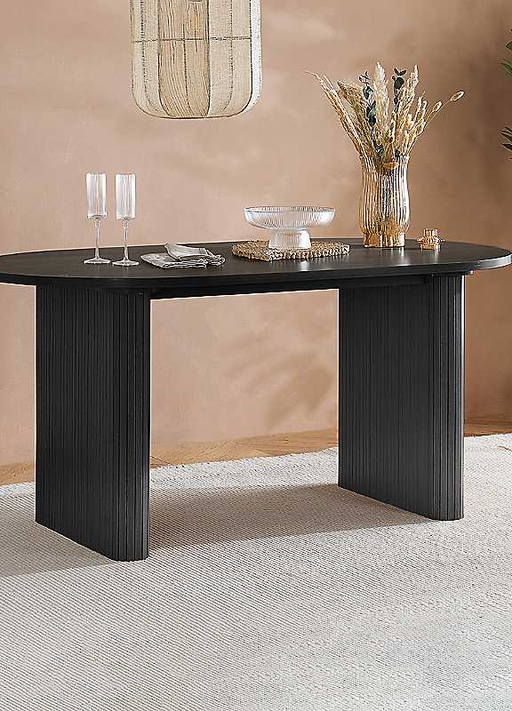 Introducing this stunning Fluted Oval Dining Table, a perfect blend of contemporary elegance and functional design. Crafted from high-quality MDF, this versatile set is ideal for a variety of interior styles and preferences. Featuring exquisite, fluted detailing to add a touch of sophistication and modern charm to your living space. With its robust construction and elegant finishes, this table is designed to be both stylish and durable. The sleek lines and fluted textures not only enhance the aesthetic appeal but also create a cohesive look across your dining and living area. Whether you're furnishing a cosy apartment or a spacious home, this table offers the perfect combination of form and function, making it an ideal choice for any contemporary living space. Elevate your home decor with a timeless elegance and modern flair.Weight of Product: 66kgSuggested Number of People for Assembly: 2Tool Kit Included: YesSelf-AssemblyManufacturer's 1 year guaranteeWipe clean only, avoid household cleaners/abrasivesMDFOverall assembled dimensions approx. 75H x 160W x 90D cmPlease remember to measure your available space before ordering. If using on an un-carpeted floor we recommend rubber or felt protection pads be used under the legs to avoid damage to your floors.