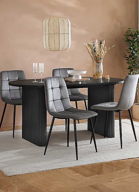 Birlea Axel Oval Fluted Dining Table with 4 Chairs - Black/Grey